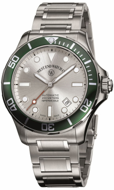 Silver diver dial, green bezel