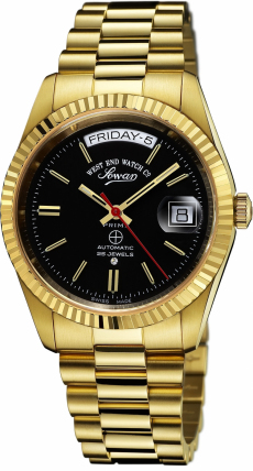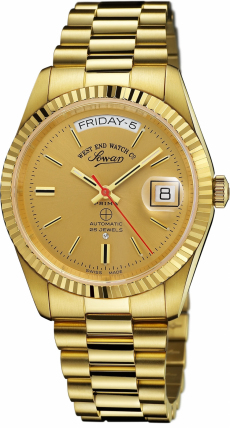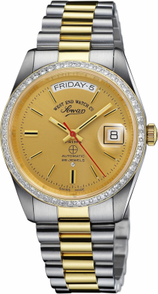 Stainless steel case and bracelet, gold-plated, bezel set with 52 zircons
